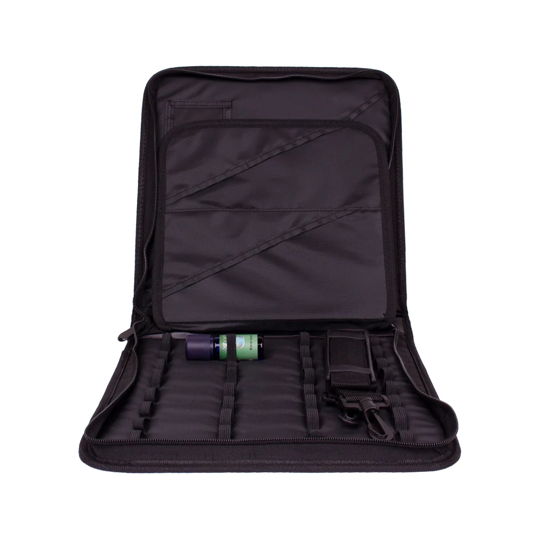 Die Oshadhi Taschenapotheke “Aroma Case” wurde speziell entwickelt, um bis zu 32 Fläschchen deiner kostbaren ätherischen Öle und Duftmischungen in 5 ml oder 10 ml Größe sicher und ordentlich zu verstauen. Schluss mit dem unübersichtlichen Chaos in Schubladen oder unsicheren Transport in improvisierten Taschen! Mit diesem eleganten und funktionalen Case hast du deine wertvollen Düfte stets übersichtlich geordnet und optimal geschützt.